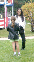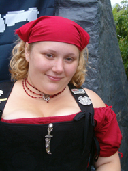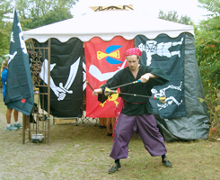This faire takes place at Winter Island on the Coast of Salem. With the winding paths, lighthouses, fishing boats and sea gulls, one could hardly find a more nautical place for a faire! Phoenix Swords did only the Bounty Game at Pirate Faire and even with 12 pirates we were still busy! The game works like this; buy one of our "wanted" packs, get so many signatures and get a sword lesson! Of course it's never easy and our pirates will lie, sneak, hide and sometimes make you do strange things to get a signature. We have some examples of visitors being silly here!