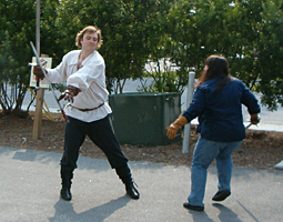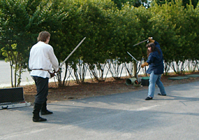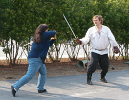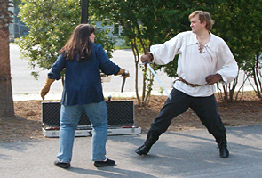 This is one of the most informal galleries you'll ever see on Phoenix. We were honored to be part of member Robert McInnes's wedding to Sheila and we were pretty worn down by the time the end of it all arrived. But we *promised* a sword demo to the folks down in Charleston and we gave them one! Fenix and I (Temper) like this fight because the audience falls for the foot stab each performance even though it's a foot (mine) making the noise every time. Keep an eye out for the airborne weaponry it's a quick fight!
