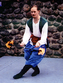 Casey Lee has been performing at faires for over 9 years. He began as a juggler at a church faire and then was introduced to swordplay by a blacksmith. He is well-known locally and a staple at a number of MA faires. He also has a year of experience leading his own troupe of performers. Casey is the only fire-devilstick juggler we have ever met or heard of in our time performing. We can't say enough great things about Casey whether he is appearing as Casey Lee of Phoenix or Kyan Le Pepper-he's a great performer, troupe member and all round good guy to work with at gigs. He can be contacted independently at: