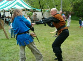 Brunhild helped Temper demonstrate the wards and grapples of Sword