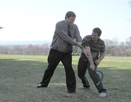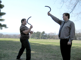 Members of Phoenix Swords were invited to present at the Fourth Annual Conference on Swordsmanship, sponsored by the Massachusetts Center for Renaissance Studies. Although the title involves swords, this year, the stars of the show were actually the poll arms brought by Doctor Snook (author of The Halberd). Frank (Fenix) And Mark Millman of Higgins Armory Museum demonstrated Halberd technique from the Fechtbuch of Joachim Meyer. Daniel Armenti spoke on the Raymond J. Lord Collection. Paul Kenworthy spoke on Weapons Drills of the Early Massachusetts Colony Militia (see armored gentleman below) And Nate (Perrin) and Fenix represented the Association for Renaissance and Medieval Swordsmanship demonstrating sickle from a manual by Paulus Hector Mair. And photos of a four-hundred year-old illuminated songbook from the library just for fun :)
